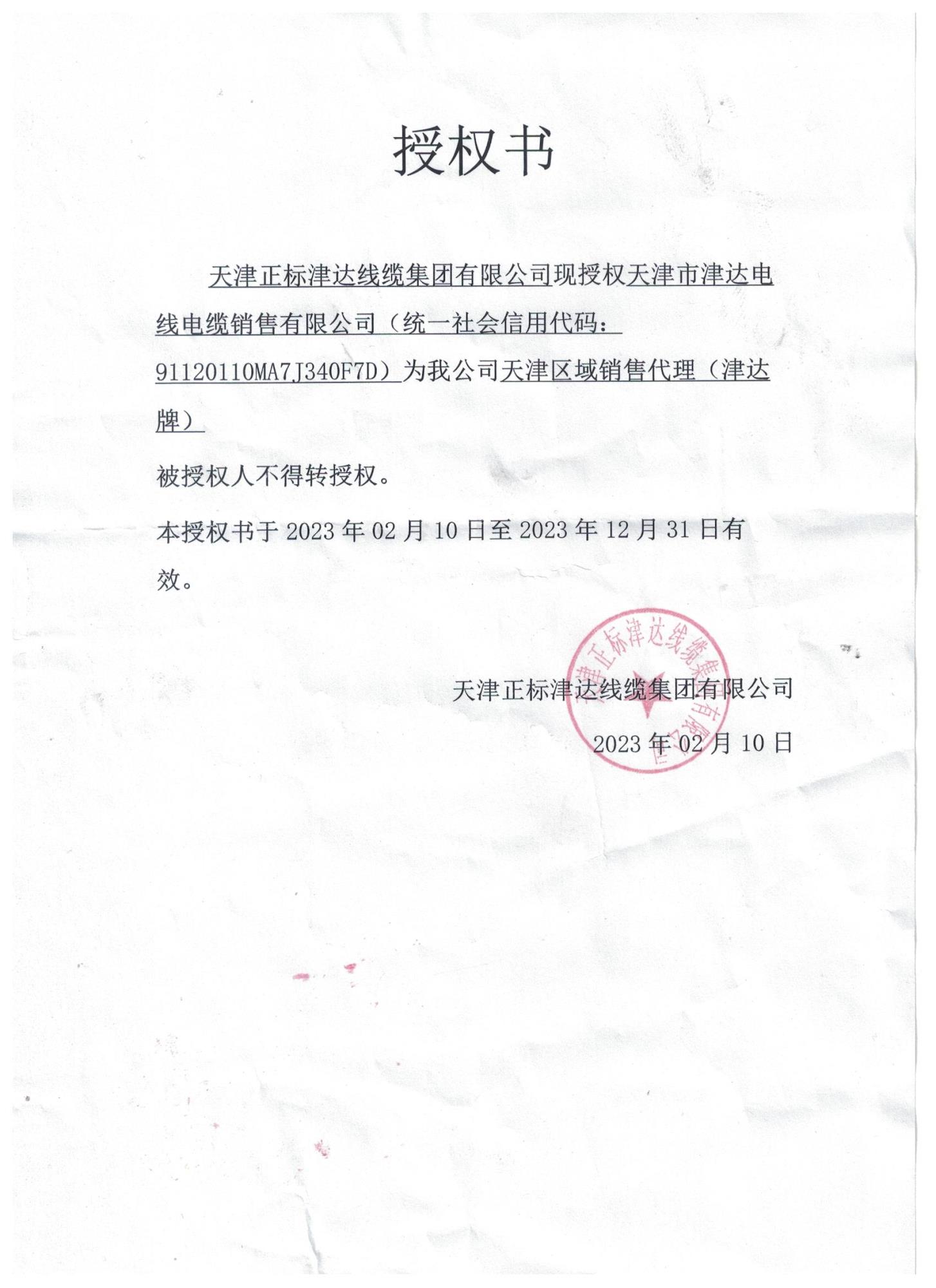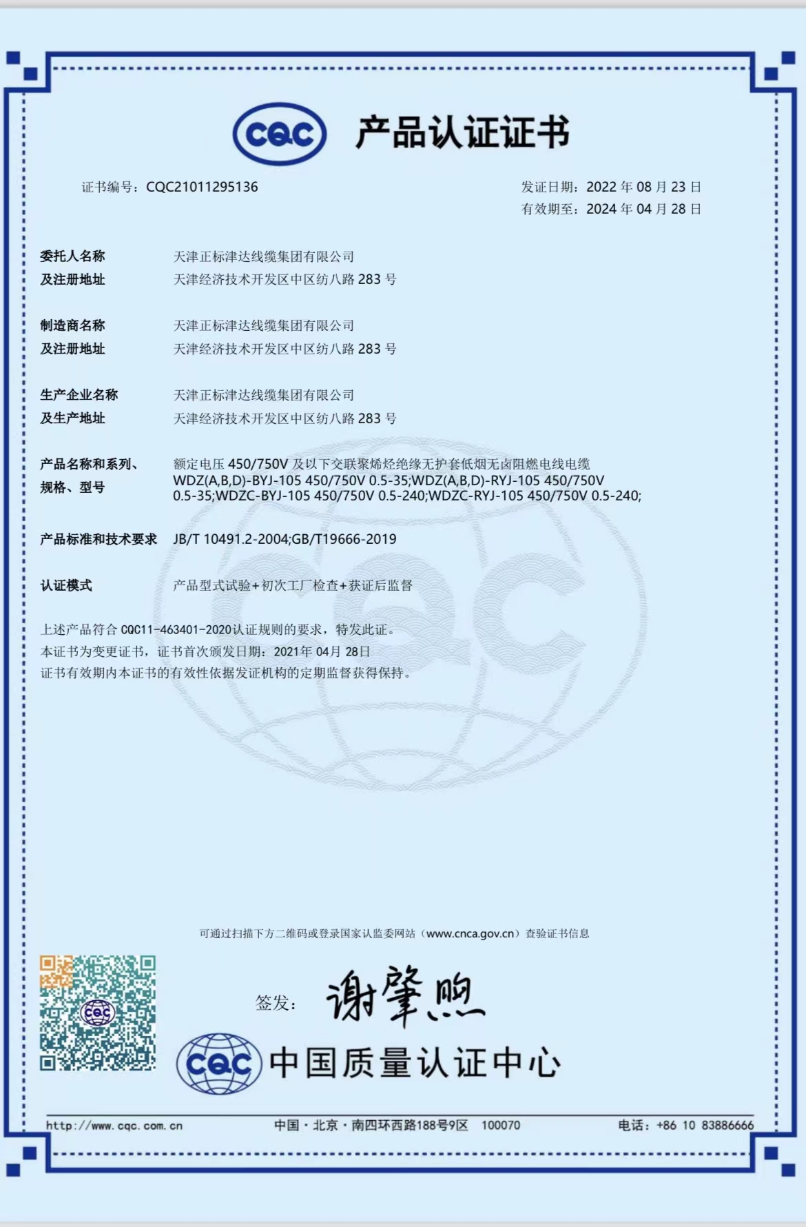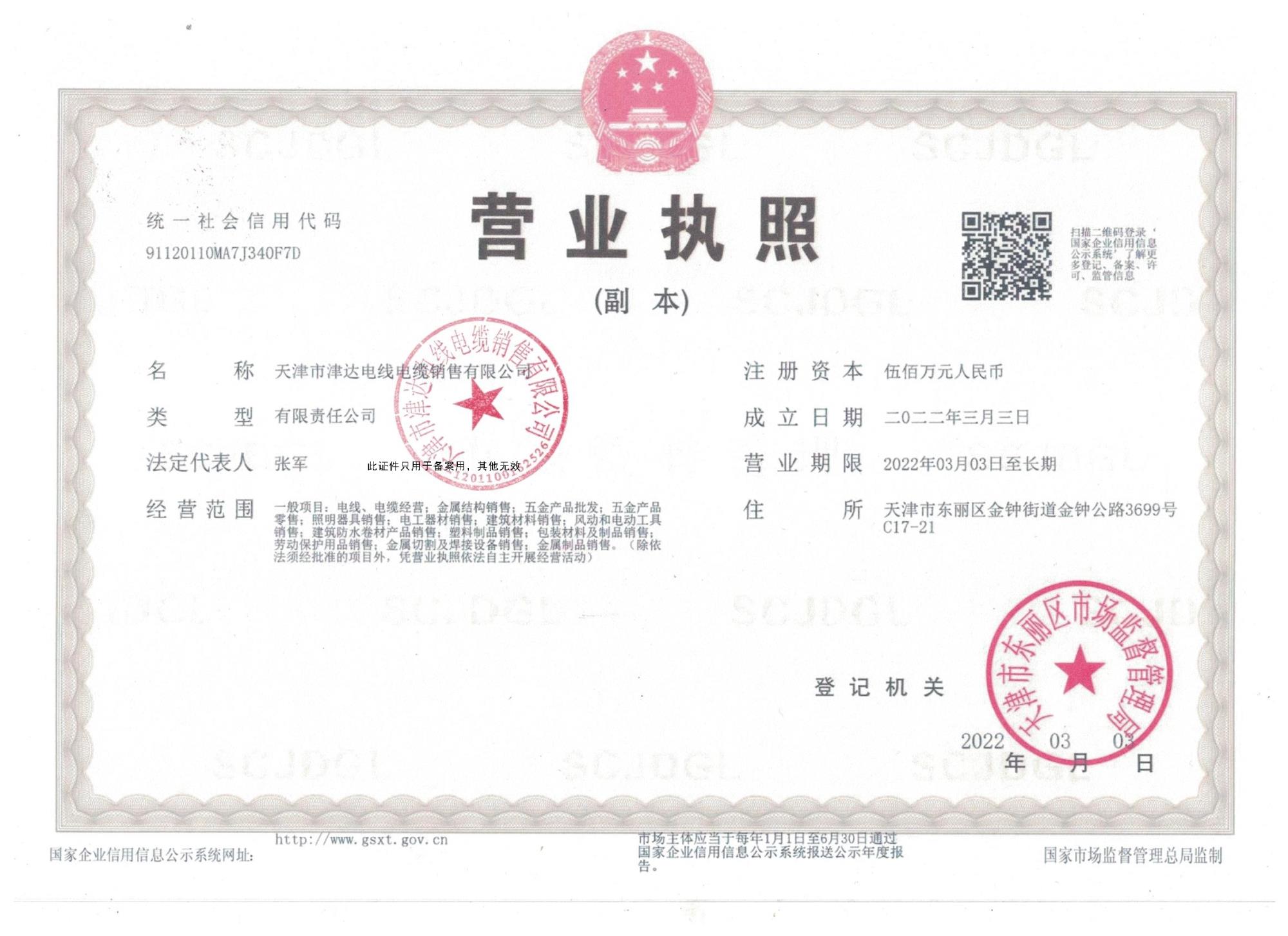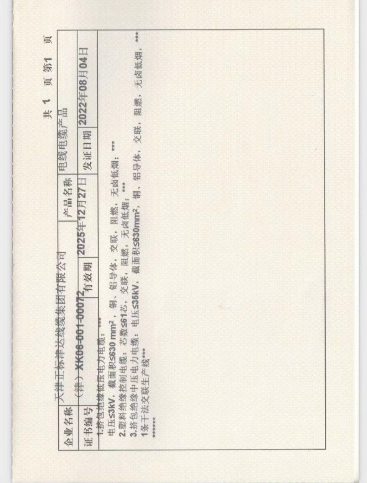 天津市津達電線電纜的案例展示正規資質,當然不負重托· honor