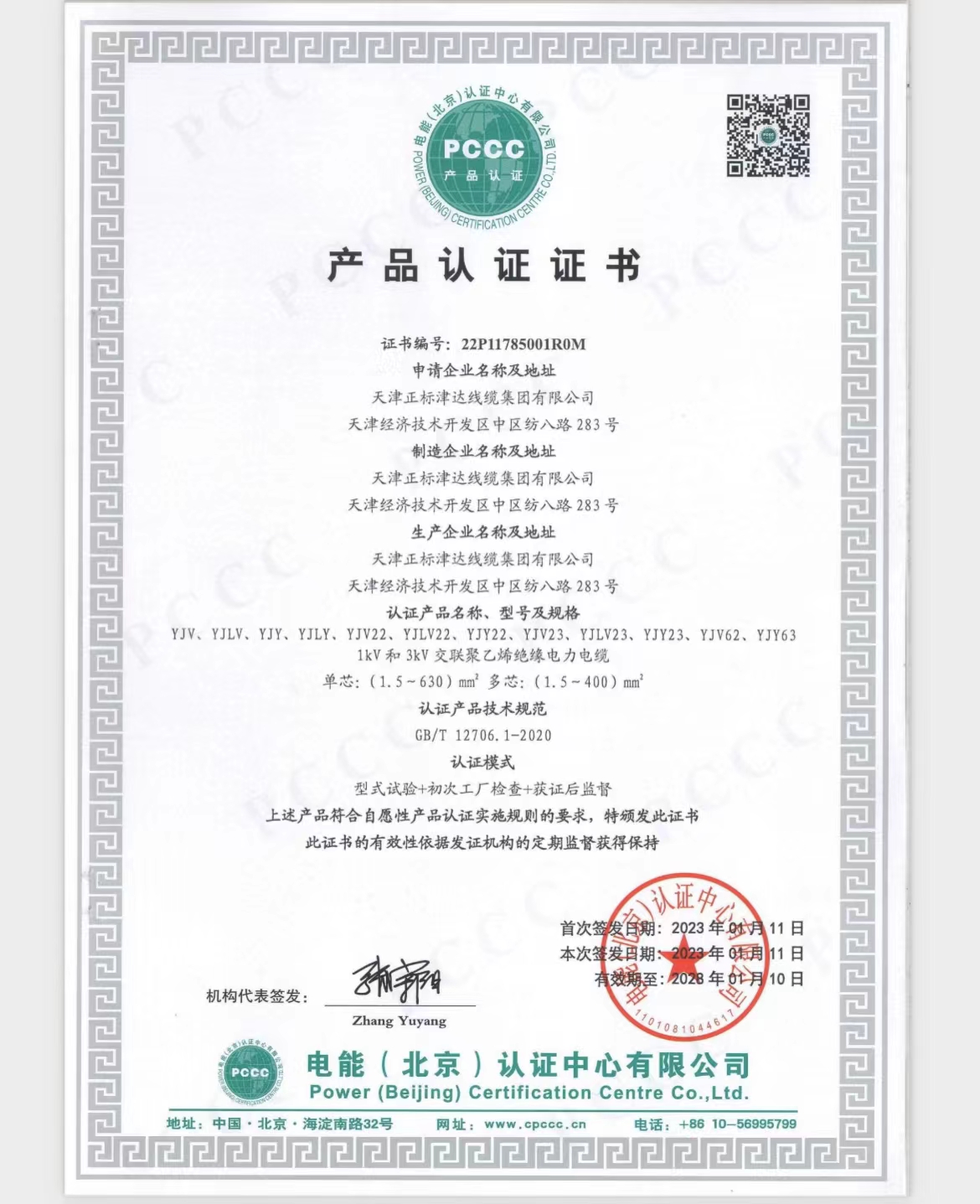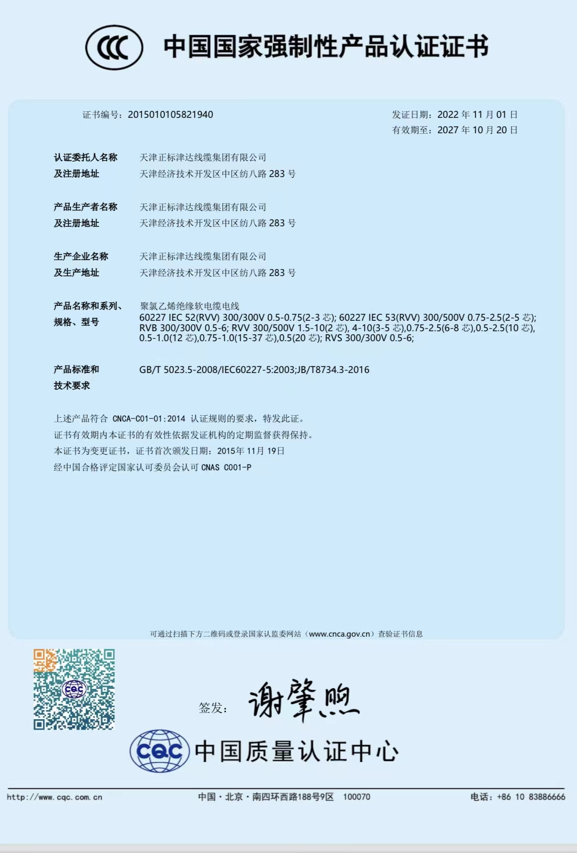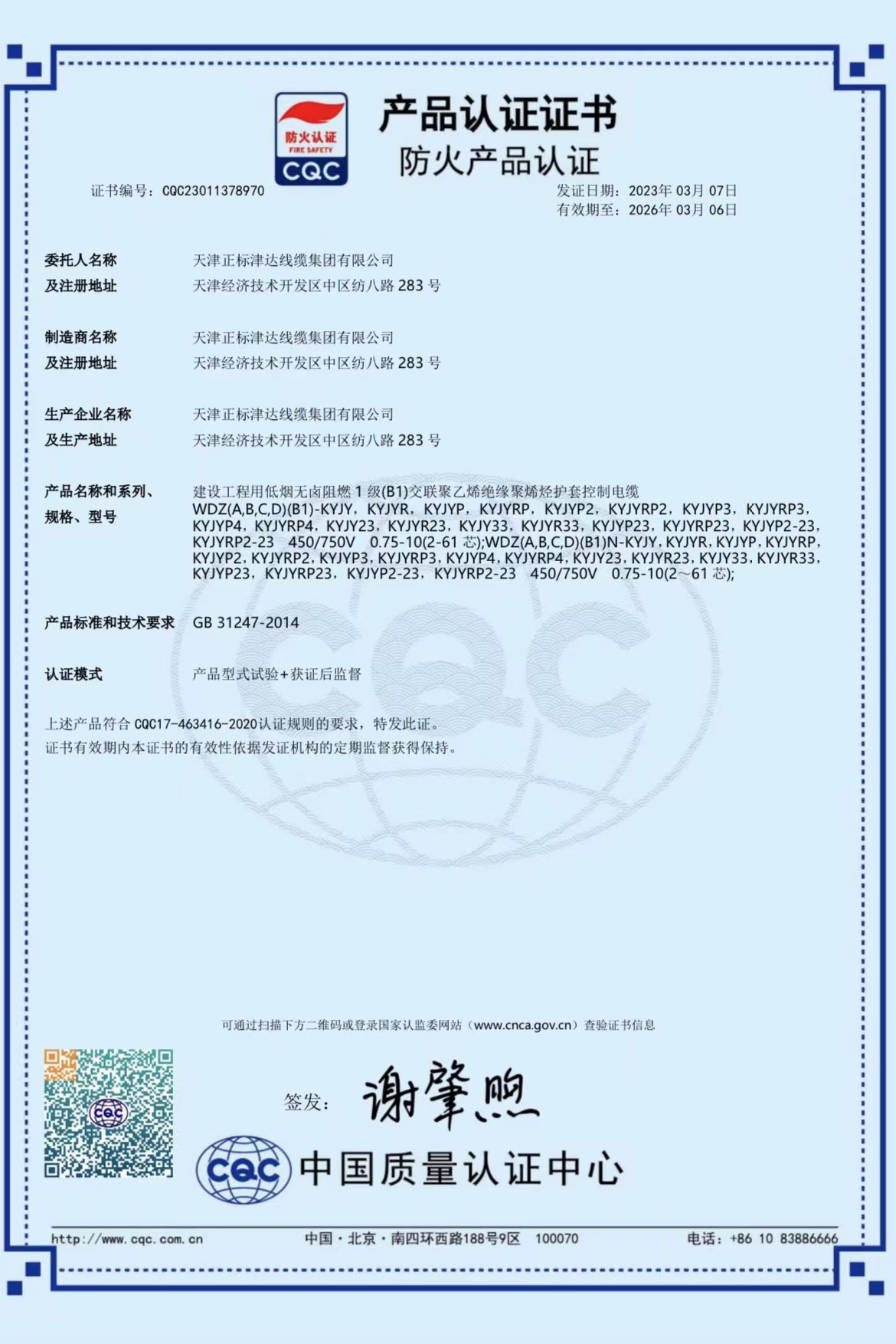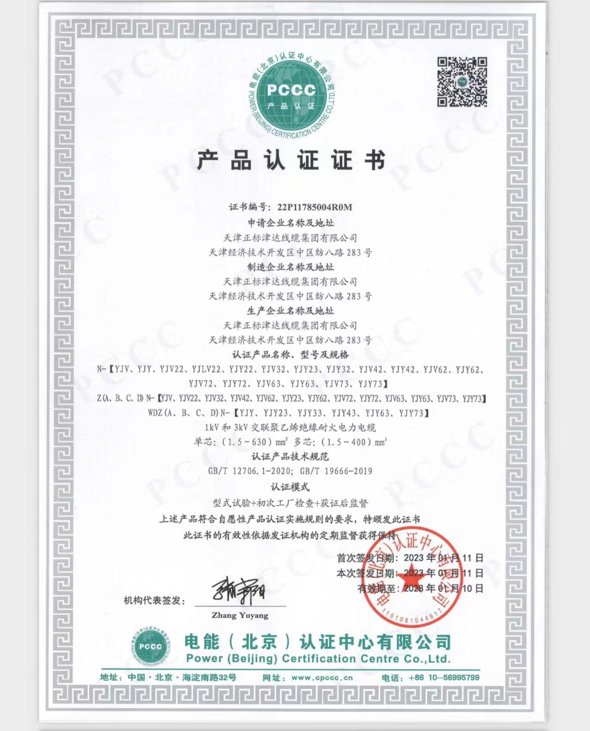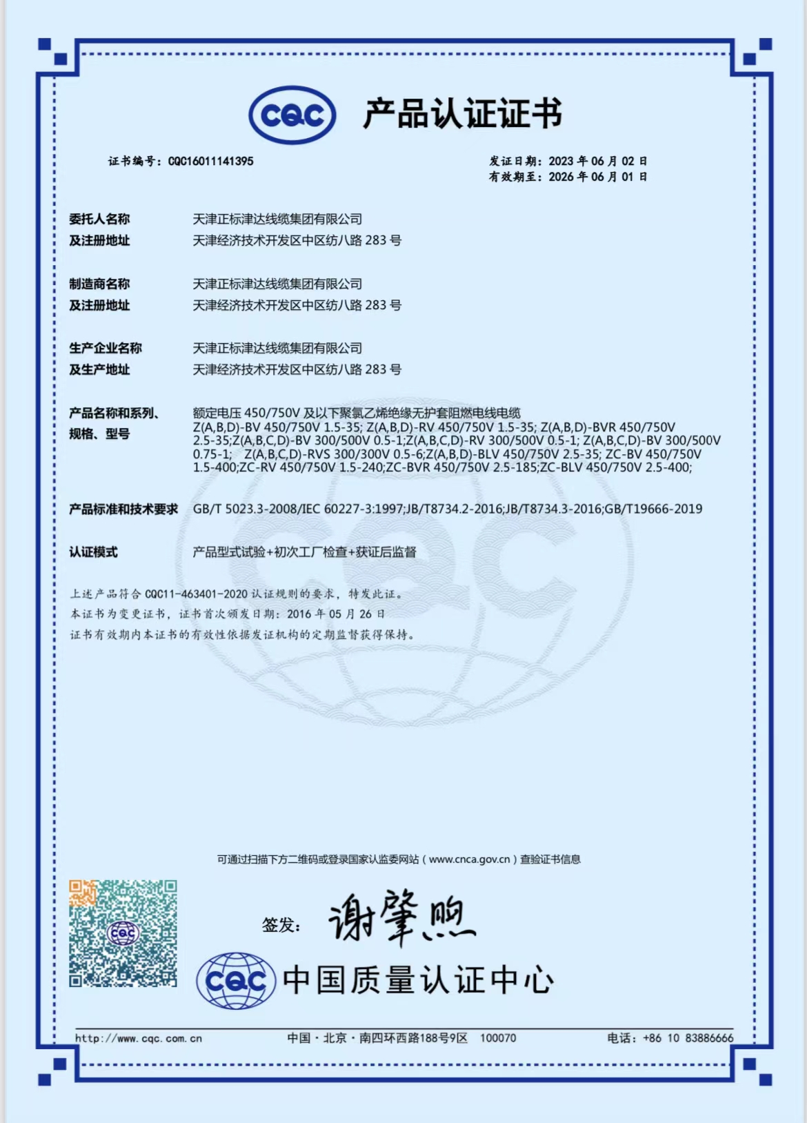天津市津達電線電纜的案例展示正規資質,當然不負重托· honor
