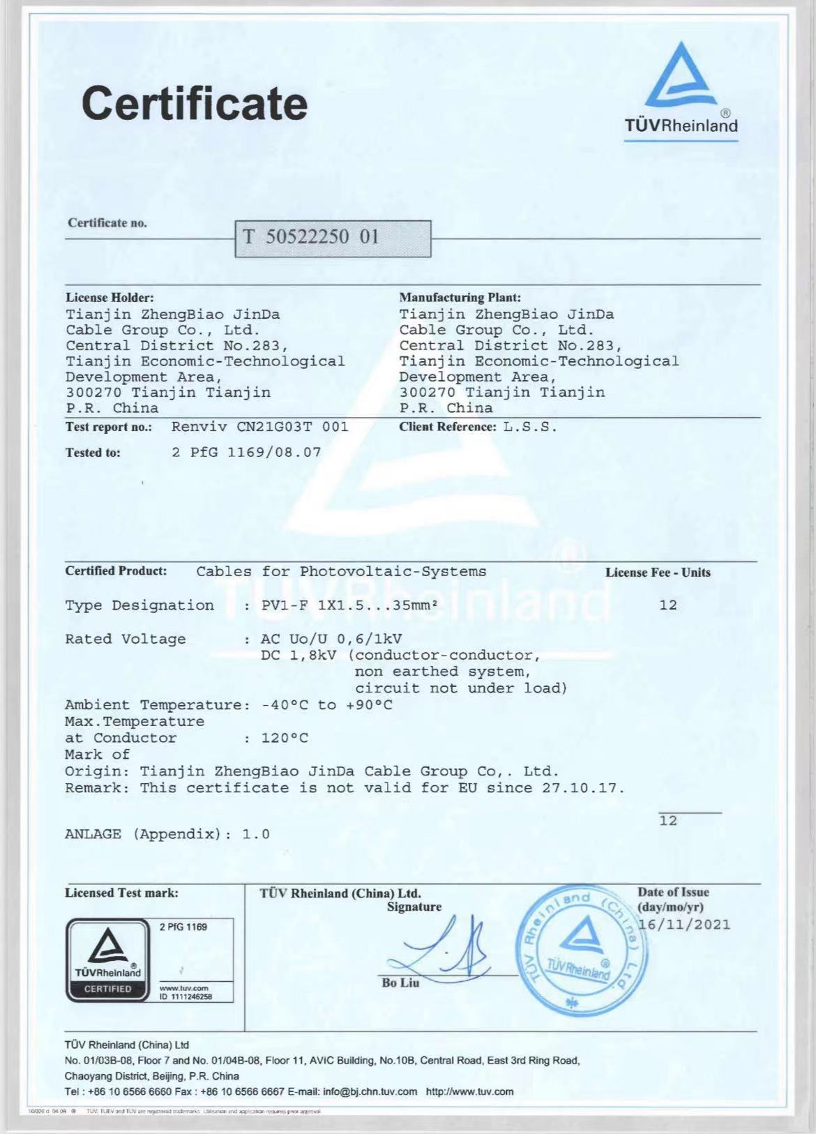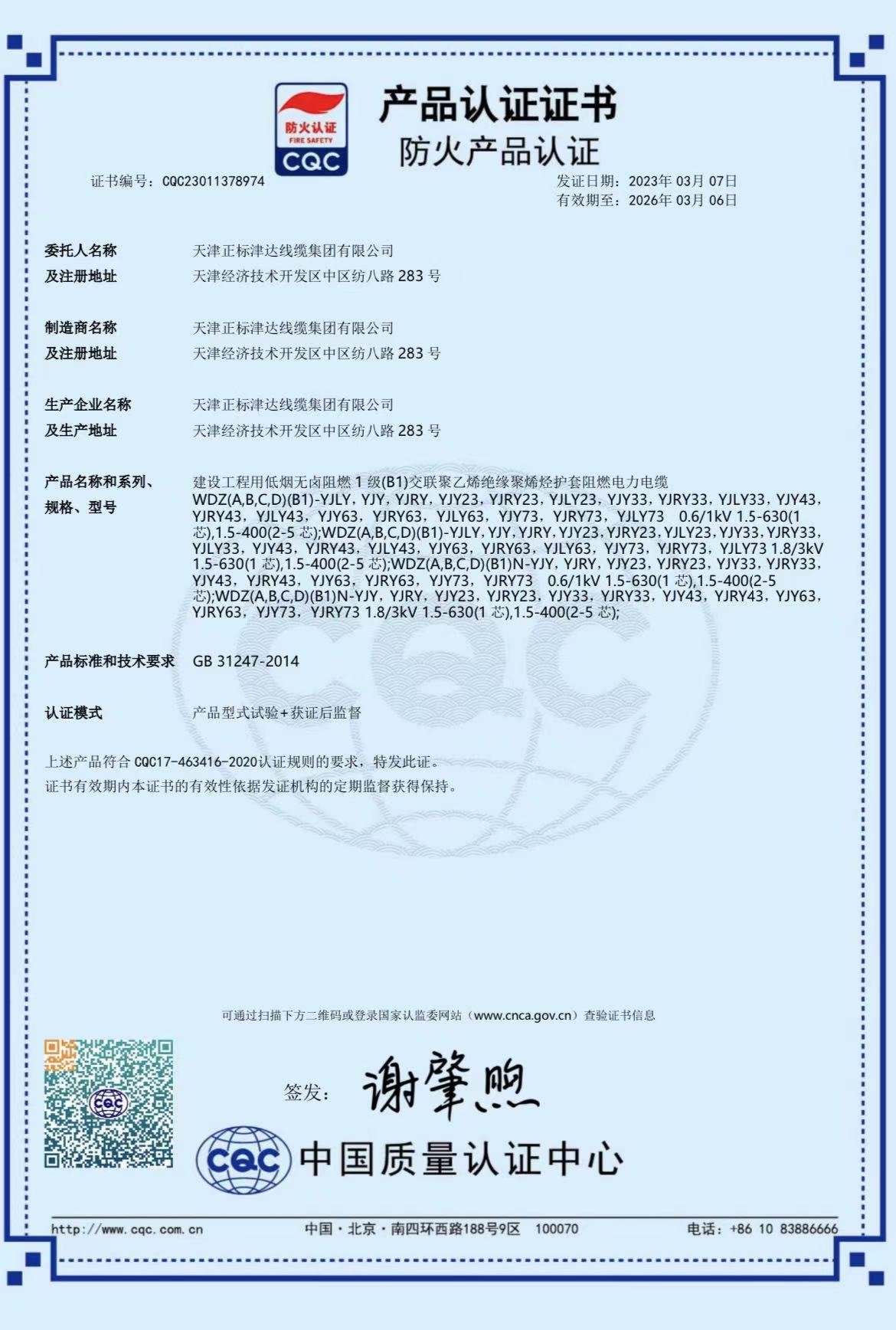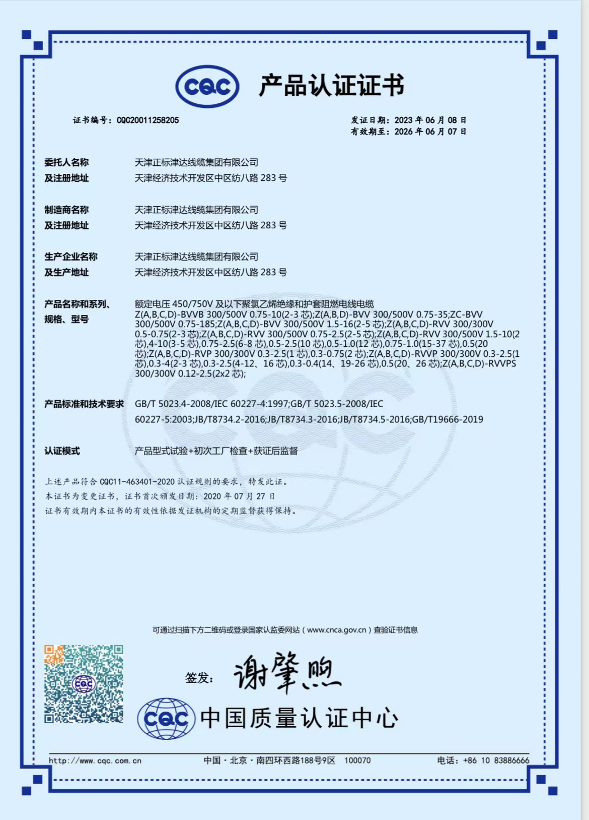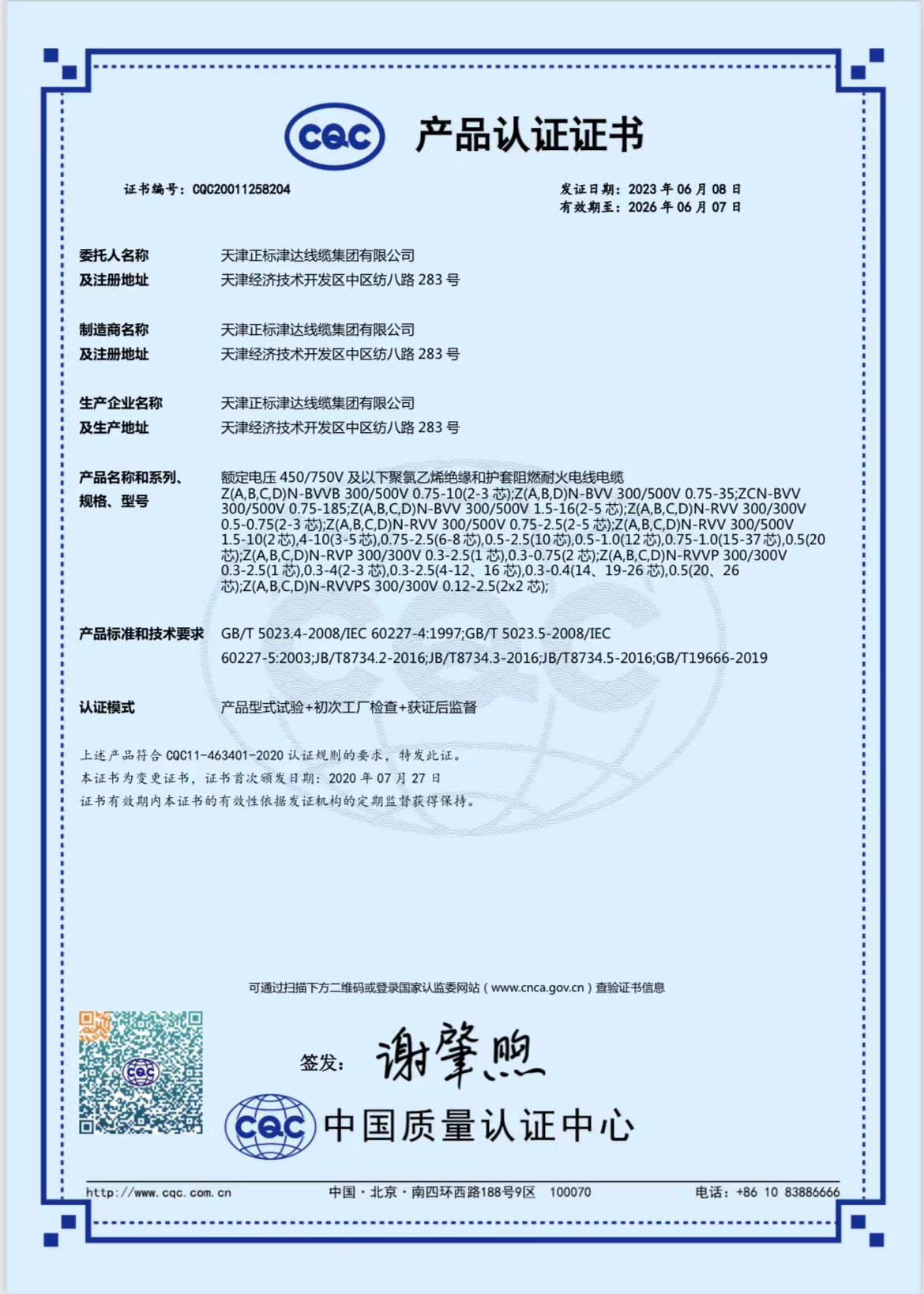 天津市津達電線電纜的案例展示正規資質,當然不負重托· honor